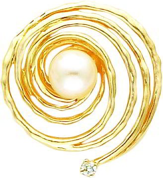 This is a beautiful new 14 karat yellow gold genuine diamond & 8mm cultured pearl swirl slide pendant. It is a great gift for yourself or a loved one and makes the perfect addition to any jewelry collection. METAL- 14K Yellow Gold ORIGIN- Israel STAMPED- .585 SOLID/HOLLOW- Solid FINISH- Polished GEMSTONE- Diamond, Cultured Pearl GEMSTONE QUALITY- AA is equivalent to I1 clarity and G-I color GEMSTONE WEIGHT- 0.06ct APPROXIMATE LENGTH- 29.8mm (1.17") APPROXIMATE WIDTH- 27.3mm (1.08") APPROXIMATE WEIGHT- 4.5 grams