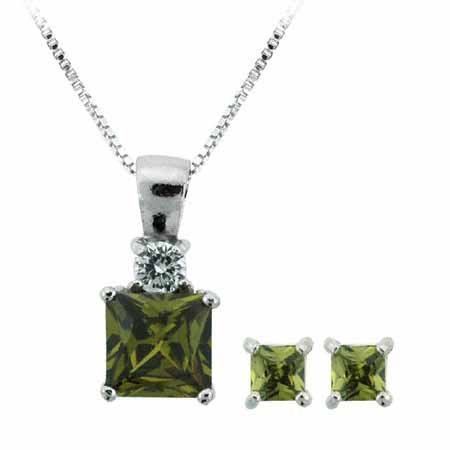 Simple elegance. A round diamond cz and square olive cz make a beautiful combination in this pretty pendant which is accented by square shaped olive cz stud earrings. Jewelry set makes a nice addtion.