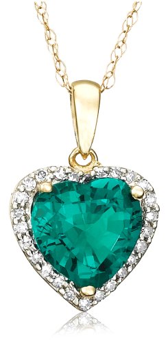 Cheap 10k Yellow Gold, May Birthstone, Created-Emerald and Diamond Heart Pendant Review