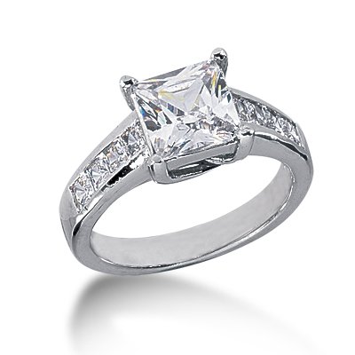 1.50CT Total Diamond Weight, Center Diamond is a 1.10CT F-G Color SI1 Clarity Enhnaced Princess Cut Diamond. The Side Diamonds are princess cut diamonds Total Side Diamond CT Weight is .40CT, F-G Color and SI1 Clarity set in 14KT White Gold.