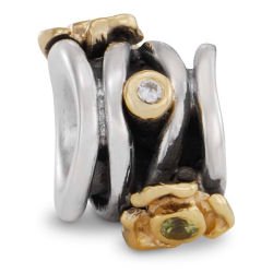 Authentic Pandora Jewelry Silver 14k Yellow Gold Peridot and Diamond Rose Rope Charm Overview